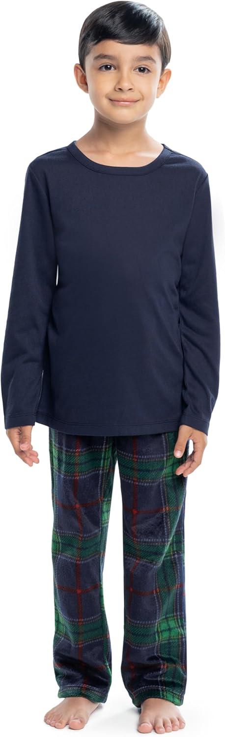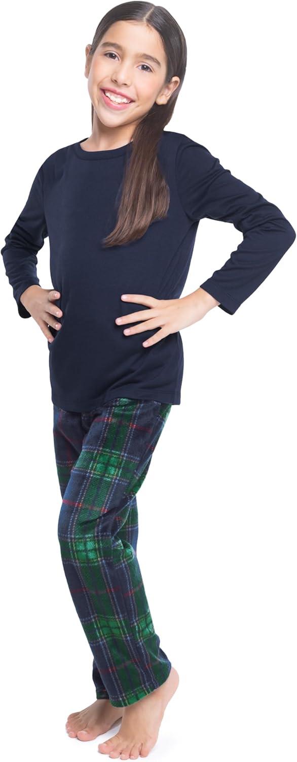 Fruit of the Loom Kids Matching Holiday Family Sleep Pajama Set for Women, Men, and Kids(Navy/Green Plaid)