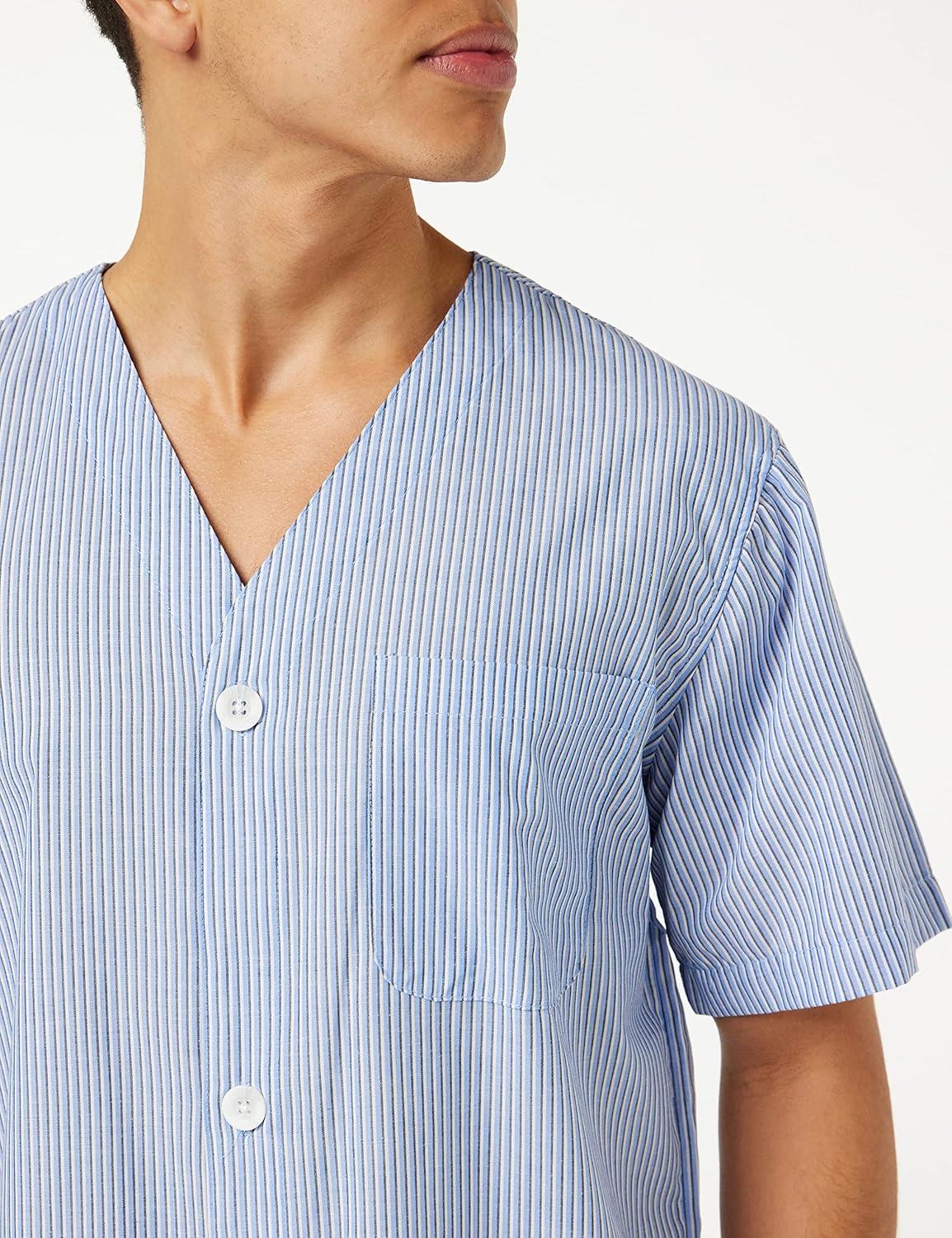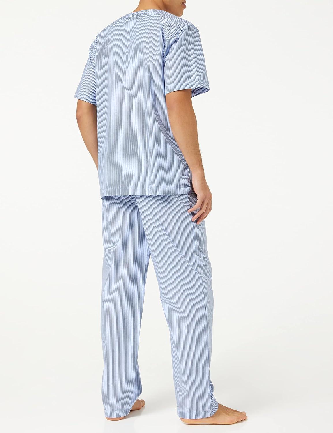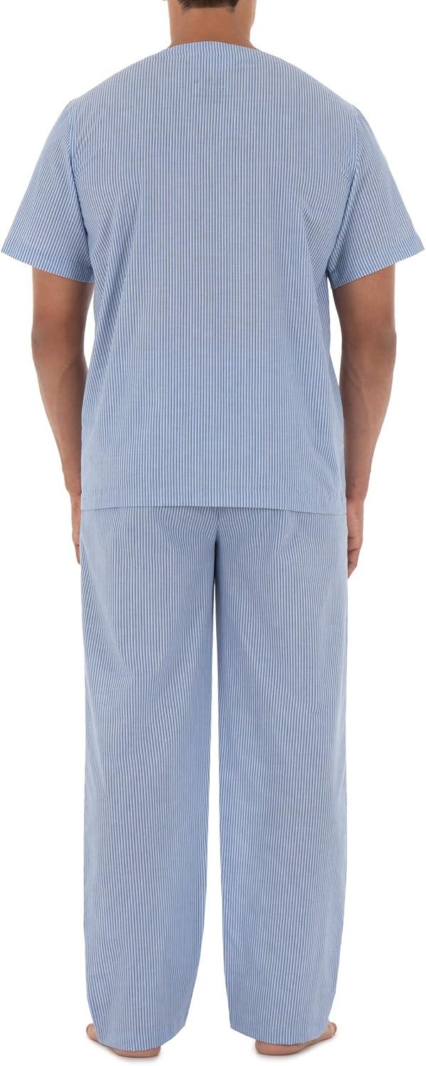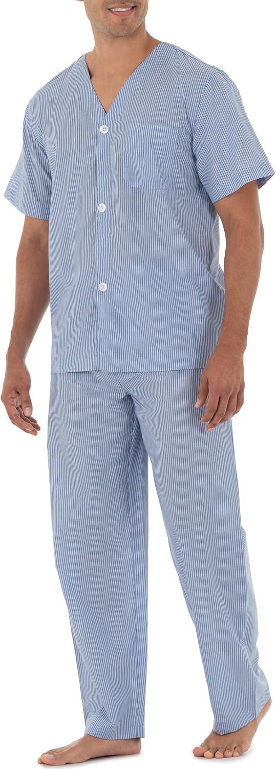 Fruit of the Loom Men’s Broadcloth Short Sleeve Top and Long Pants Pajama Set(Blue Stripe)