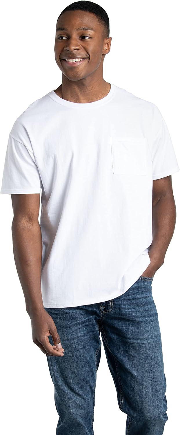 Fruit of the Loom Men’s Eversoft Cotton Short Sleeve Pocket T-Shirts, Breathable, 2-Pack(2 Pack – White)