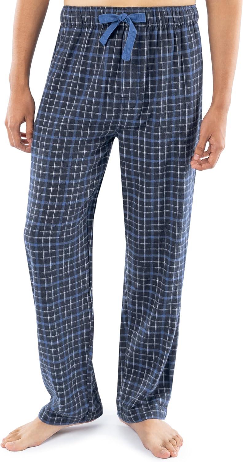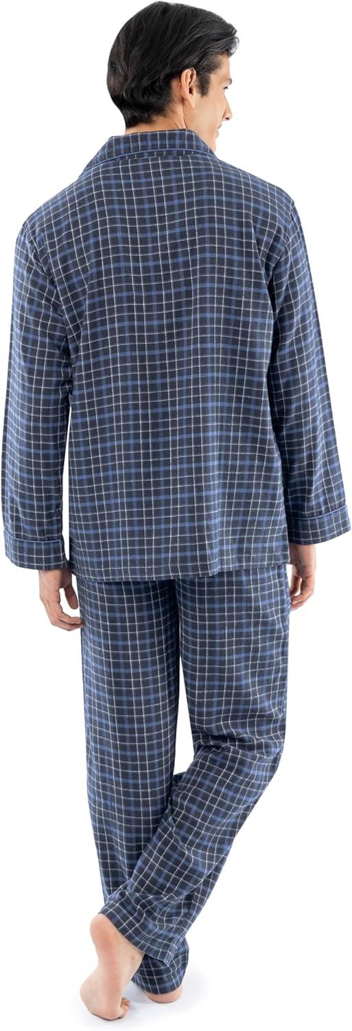 Fruit of the Loom Men’s Flannel Pajama Sleep Set(Navy Plaid)
