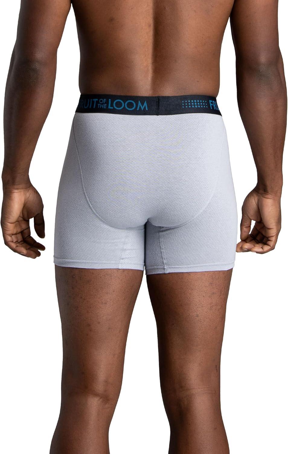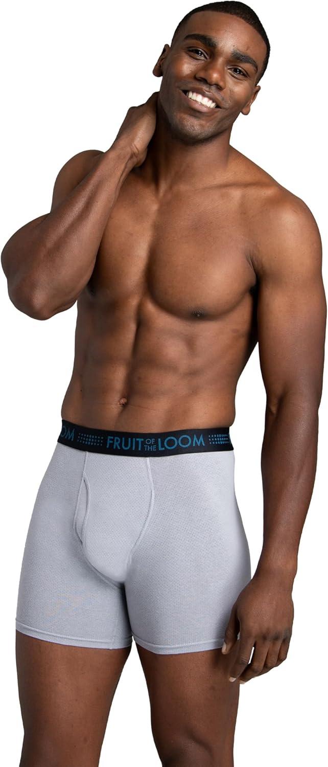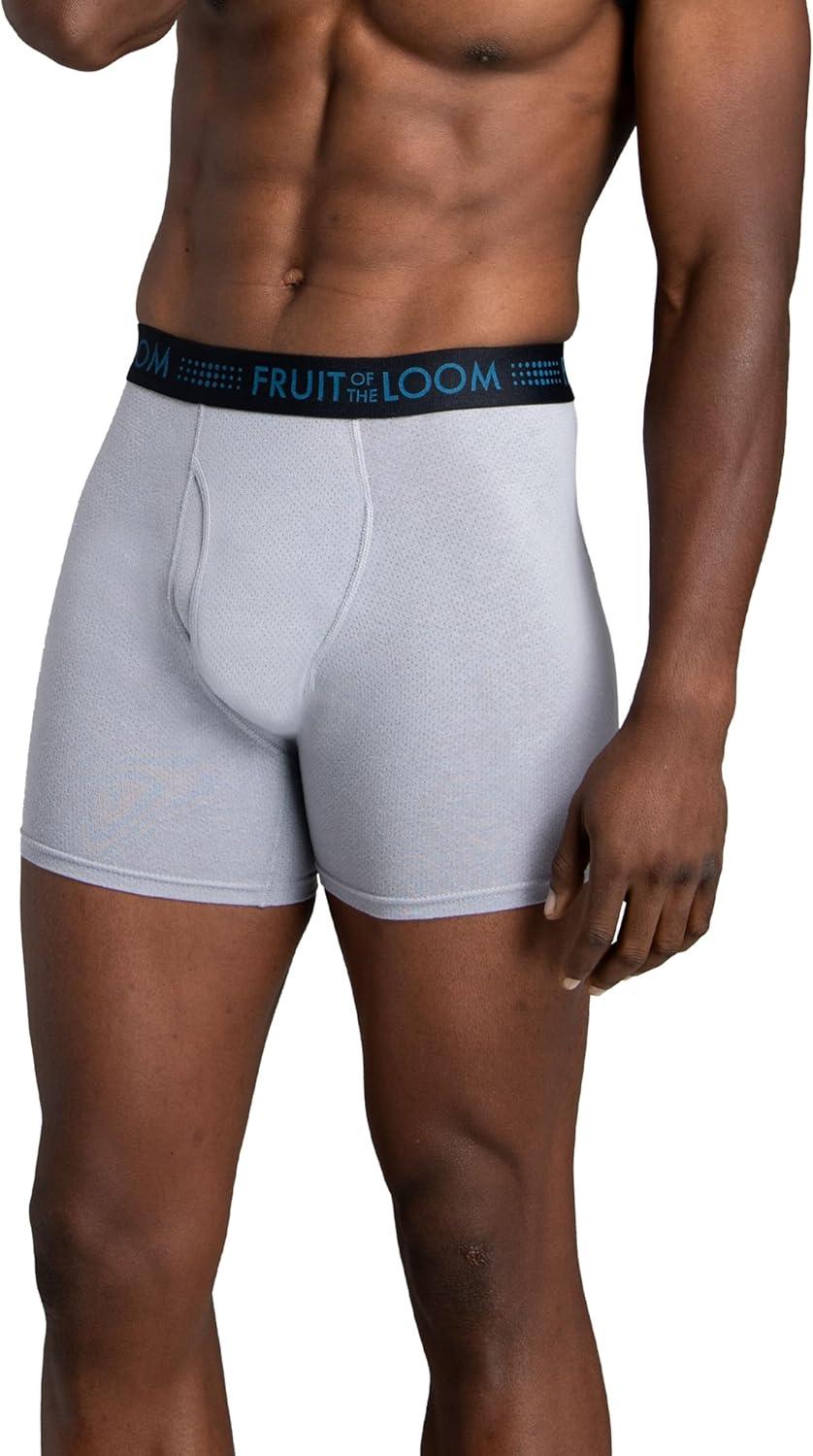 Fruit of the Loom Breathable boxer briefs feature soft cotton-blend mesh fabric that promotes air flow preventing you from getting hot. Moisture wicking technology distributes sweat away from the skin, keeping you dry throughout the day. These boxer briefs have a traditional fly design with reinforced seams for better support. A wider, tag free waistband feels soft against the skin.