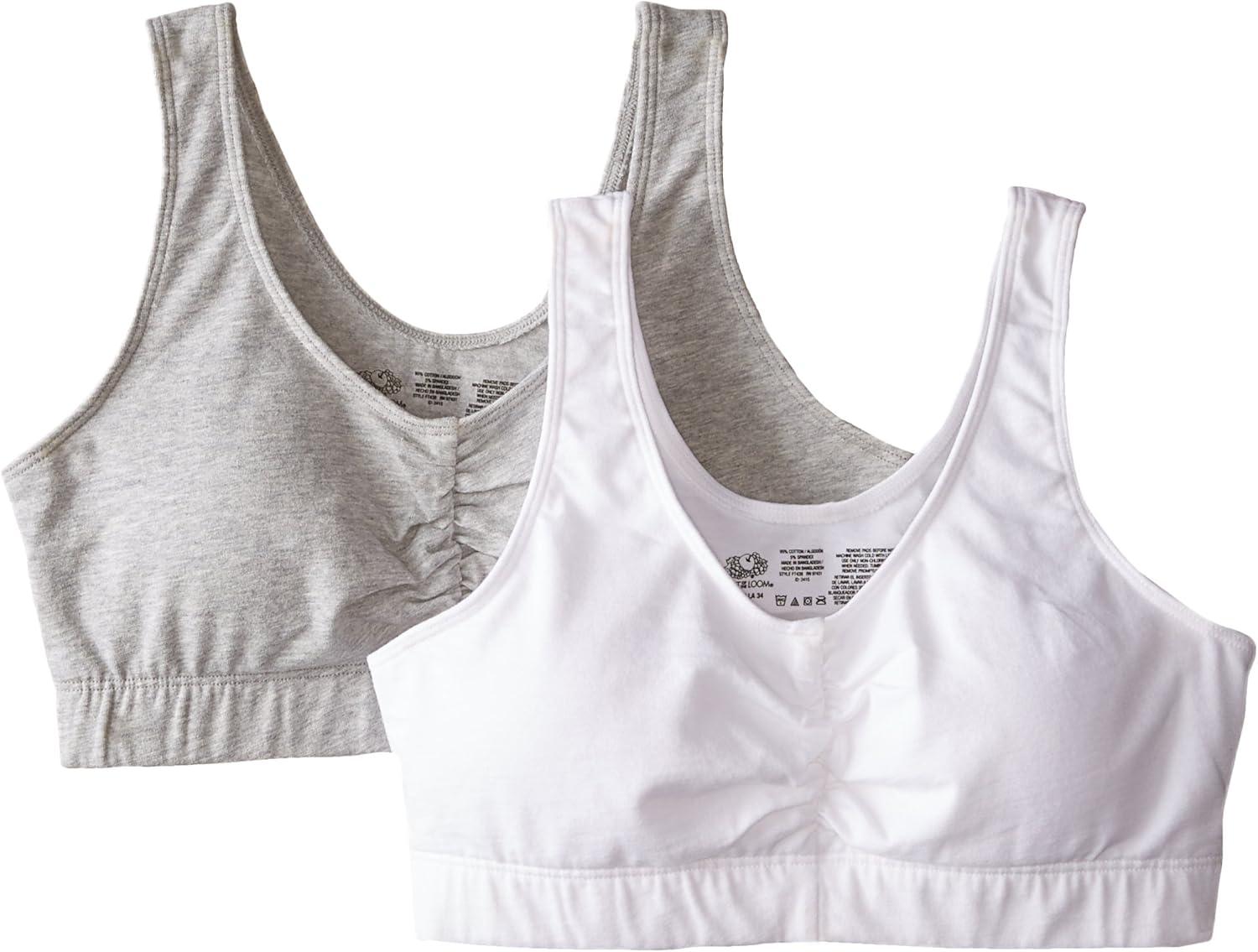 imageFruit of the Loom Womens 2Pack Shirred Front Sport Bra  Removable Pads for Customizable SupportWhiteHeather Grey