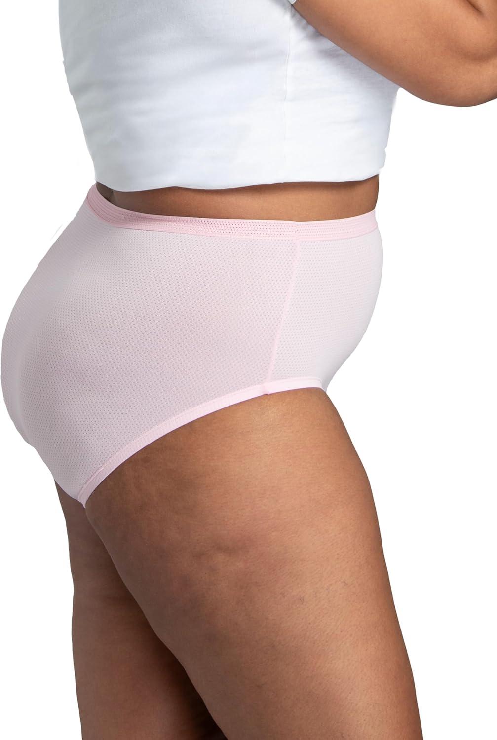 Fruit of the Loom Breathable Cotton-Mesh hipsters are just what you need to help you stay cool and fresh all day long. These panties are made with breathable, cotton-mesh fabric that not only supports the flow of air but wicks away moisture to keep you dry. Not only will these panties keep you feeling your best all day long, they’re designed with comfort in mind. Soft leg bands and a comfort-covered waistband provide added comfort, and as always, our Fruit of the Loom panties are tag free and made with a 100% cotton liner for extra softness. The contemporary hipster silhouette sits slightly above the hips.