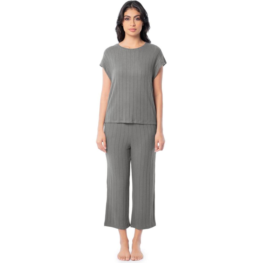Fruit of the Loom womens Dolman Sleeve and Cropped Pant Sleep Set(Grey)