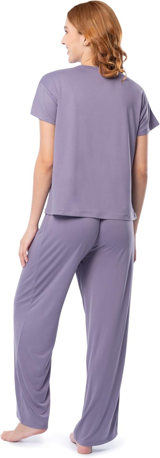 Indulge in ultimate relaxation with the Fruit of the Loom Women's Drop Shoulder Tee and Convertible Waist Sleep Set. Made from soft, stretchy jersey fabric, this two-piece set combines modern style with unmatched comfort. The relaxed, boxy-fit tee features trendy drop shoulders, while the full-length, wide-leg pants offer a flattering silhouette. Designed with a convertible foldable waistband and an interior drawcord, this pajama set ensures a custom, flexible fit—ideal for lounging or sleeping in effortless style.