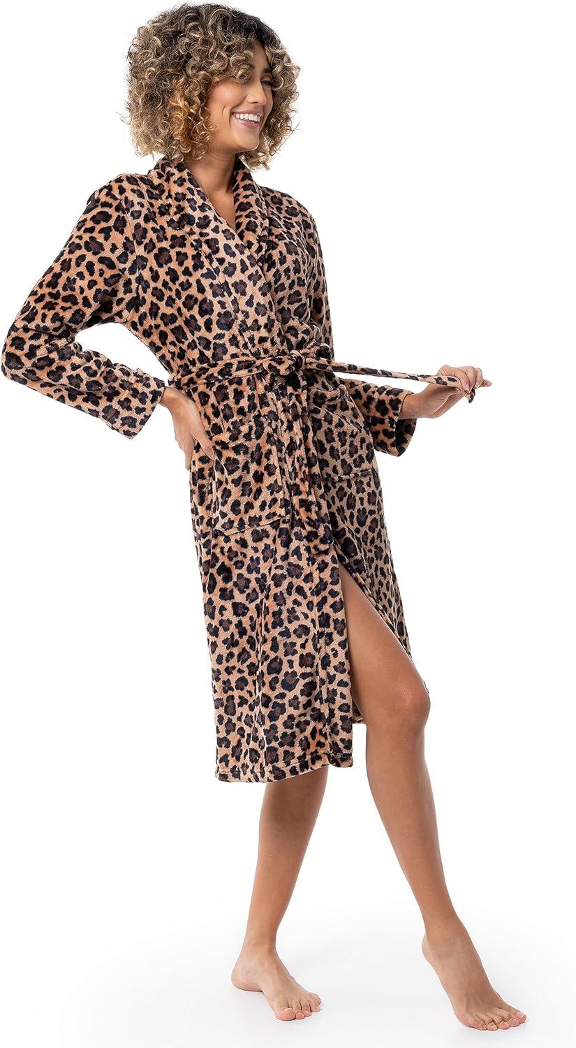Fruit of the Loom Womens Fleece Robe(Brown Cheetah)