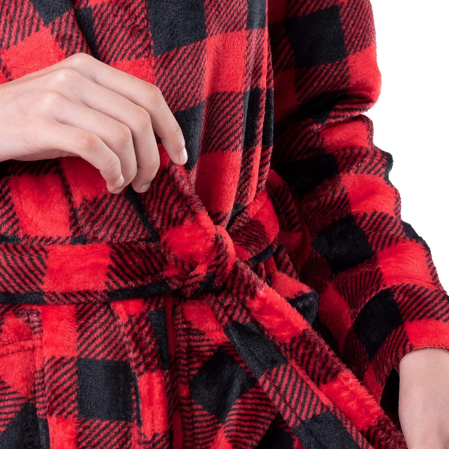 Fruit of the Loom Womens Fleece Robe(Buffalo Check)