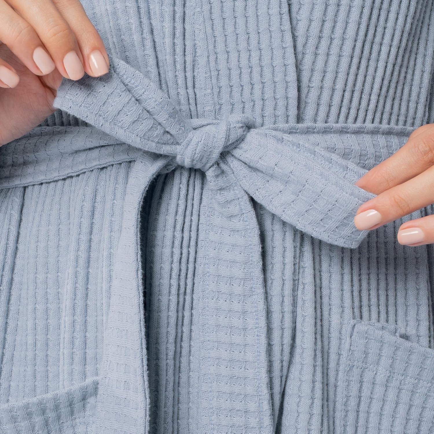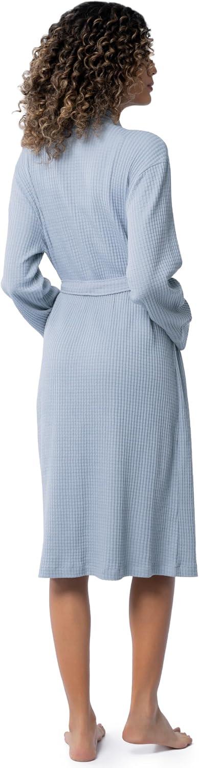 Fruit of the Loom womens Lightweight Waffle Knit Kimono Robe(Ashley Blue)