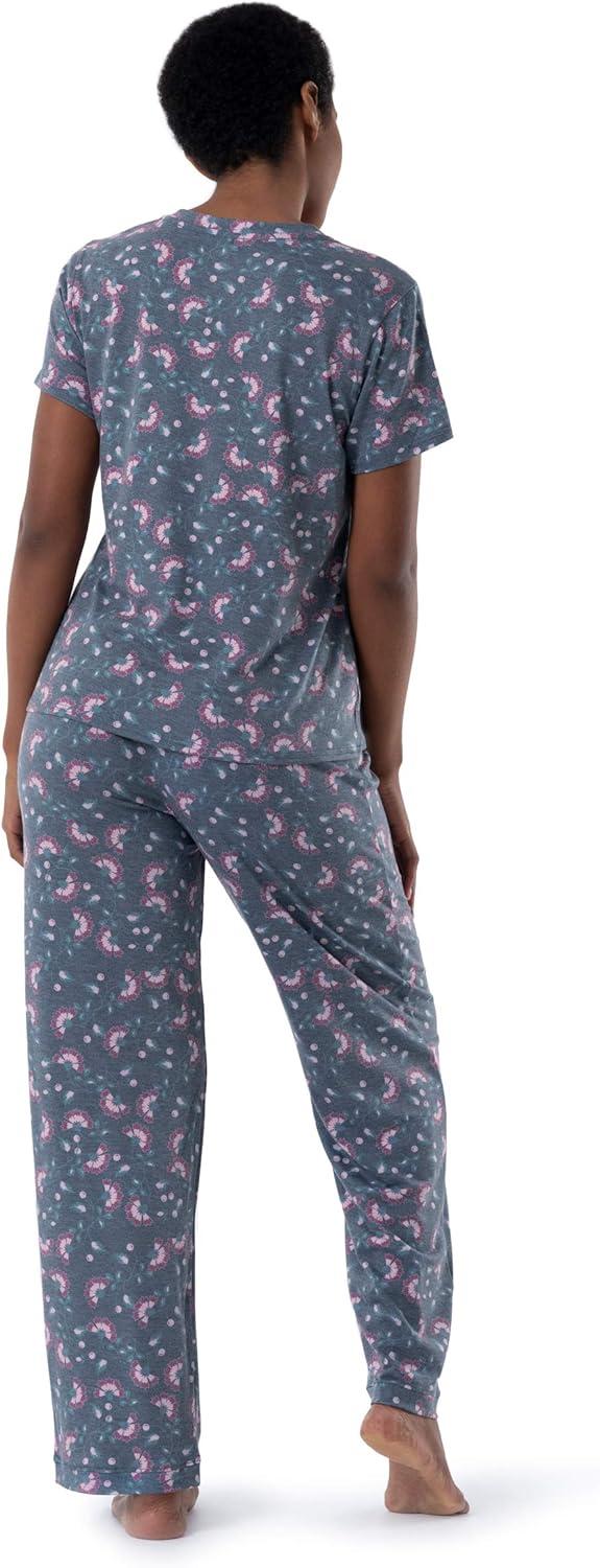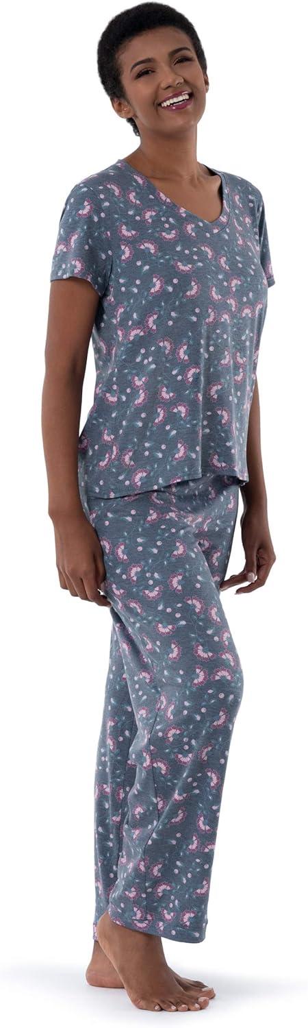 Fruit of the Loom womens Short Sleeve Tee and Pant 2 Piece Sleep Set(Floral)