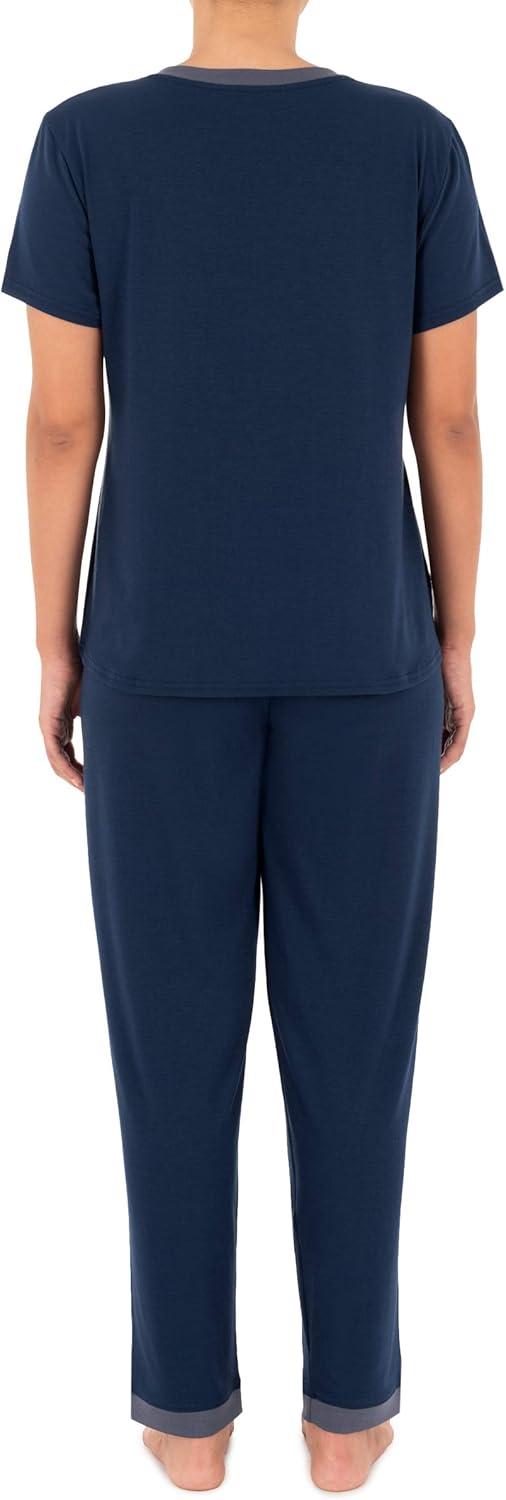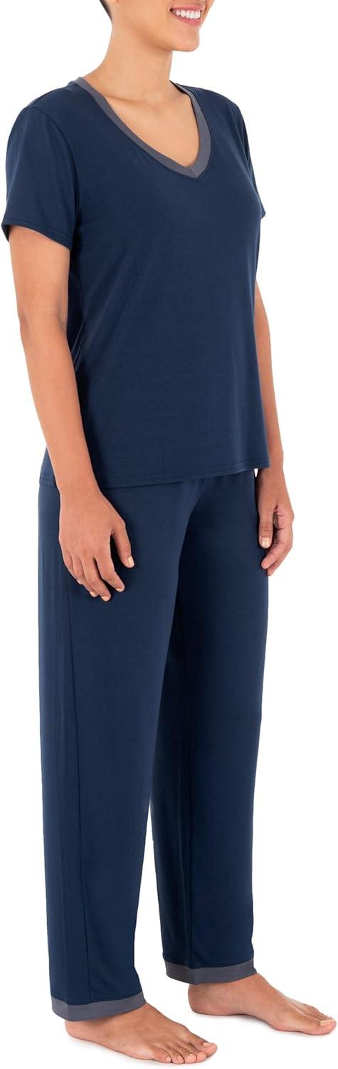 Fruit of the Loom womens Short Sleeve Tee and Pant 2 Piece Sleep Set(Midnight Blue)