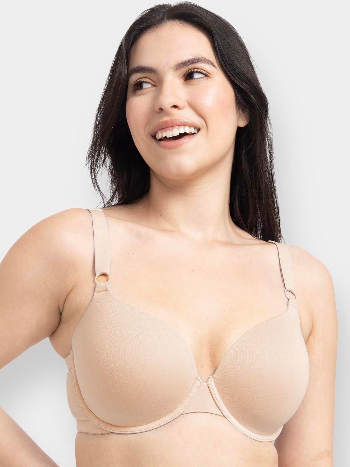 Fruit of the Loom Womens Smooth Cotton T-Shirt Bra – Ultra-Soft, Flexible, and Invisible Under Tees(Sand/ Black Hue)