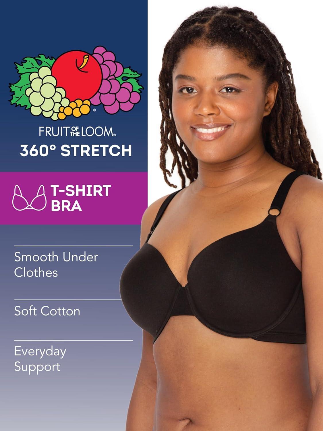 The Fruit of the Loom women's 3-pack T-shirt bra is your new favorite no show bra. The smooth, lightly lined cups are invisible under shirts, but one thing you won't be able to hide is your confidence. This full coverage bra is designed with thick adjustable straps and underwire for all-day comfort and support. Fruit of the Loom has been one of America's most trusted brands for over 160 years. We promise to deliver quality undergarments at an affordable price, always. Start everyday happy with Fruit of the Loom.