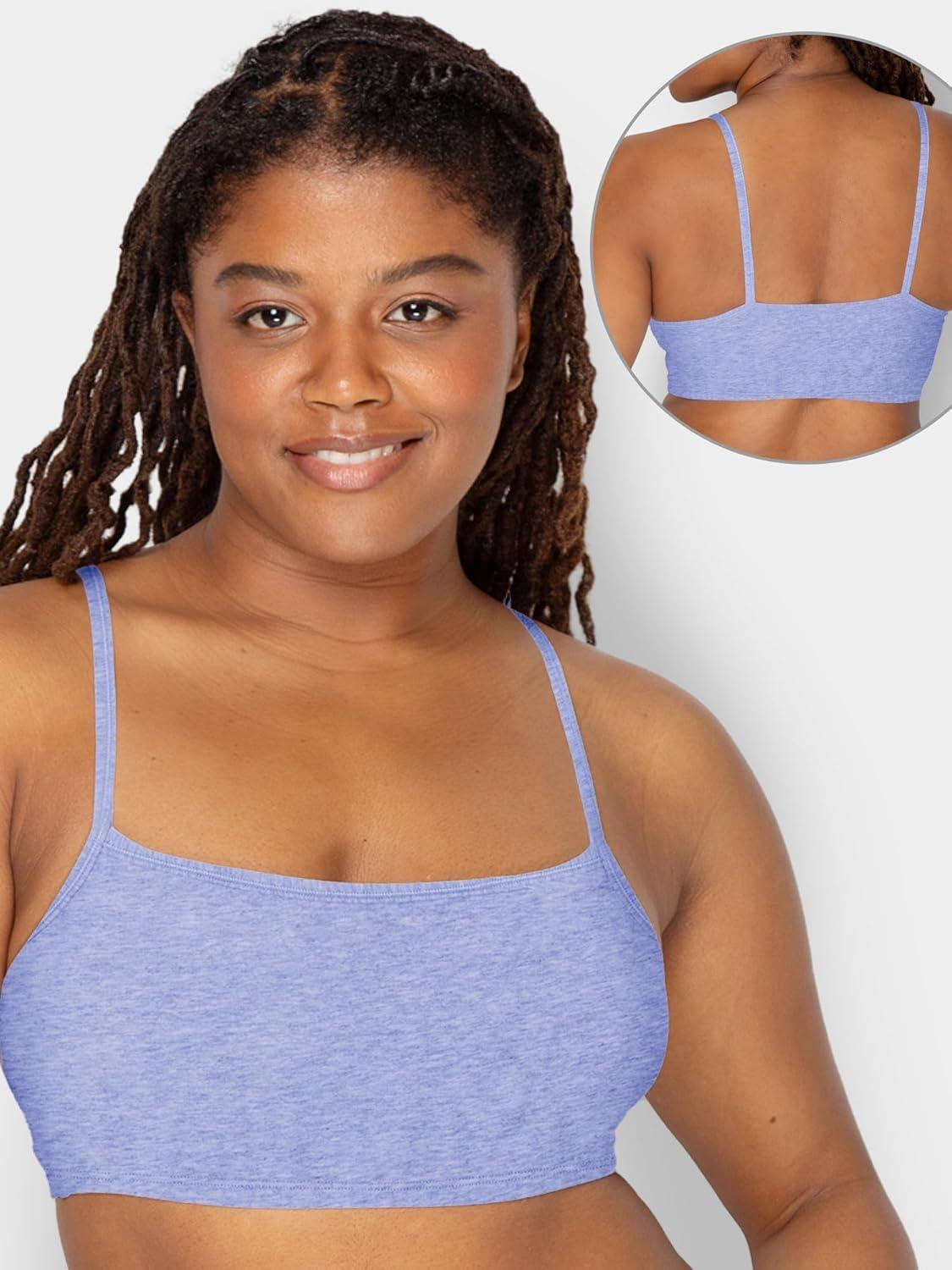 Fruit of The Loom Womens Spaghetti Strap Cotton Pullover Sports Bra Value Pack(Heather Grey/Heather Grey/White/White/Heather Blue/Heather Blue)