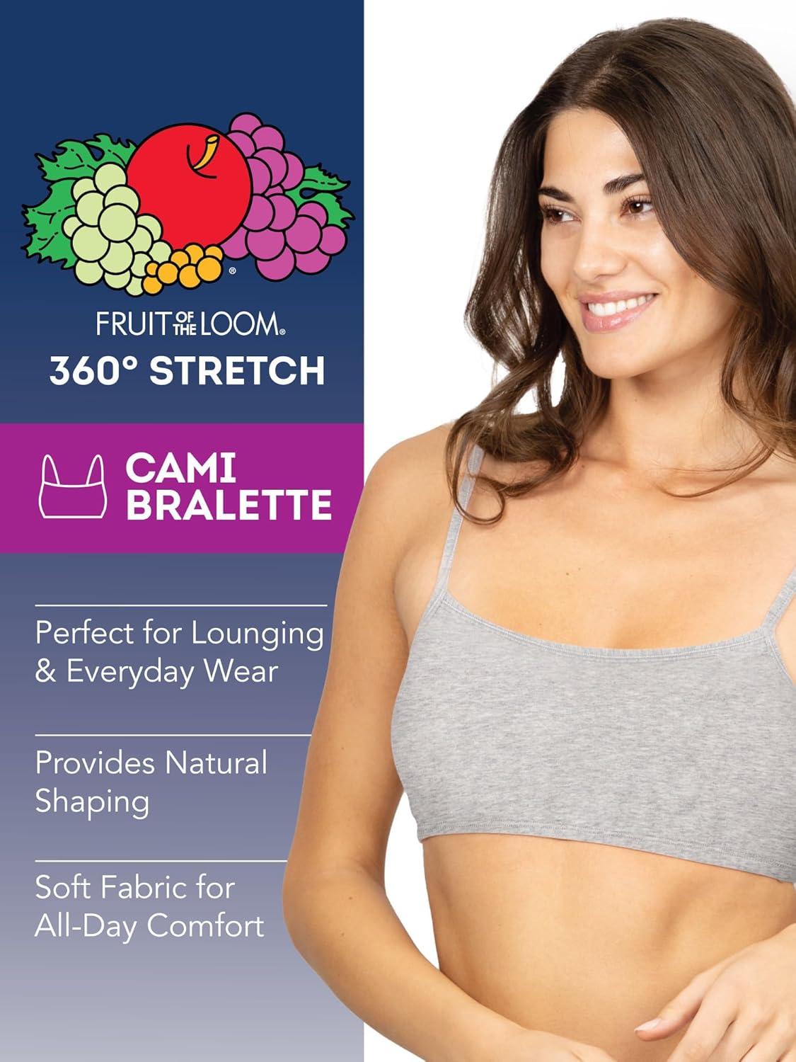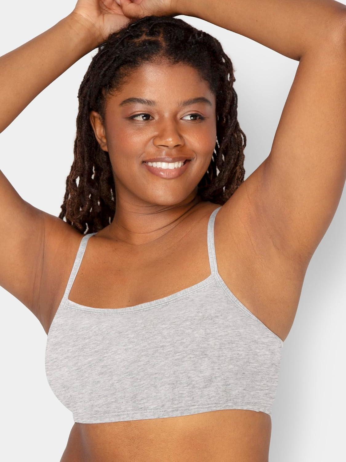 Fruit of The Loom Womens Spaghetti Strap Cotton Pullover Sports Bra Value Pack(White/Heather Gray/Black/White/Heather Gray/Black 6-pack)