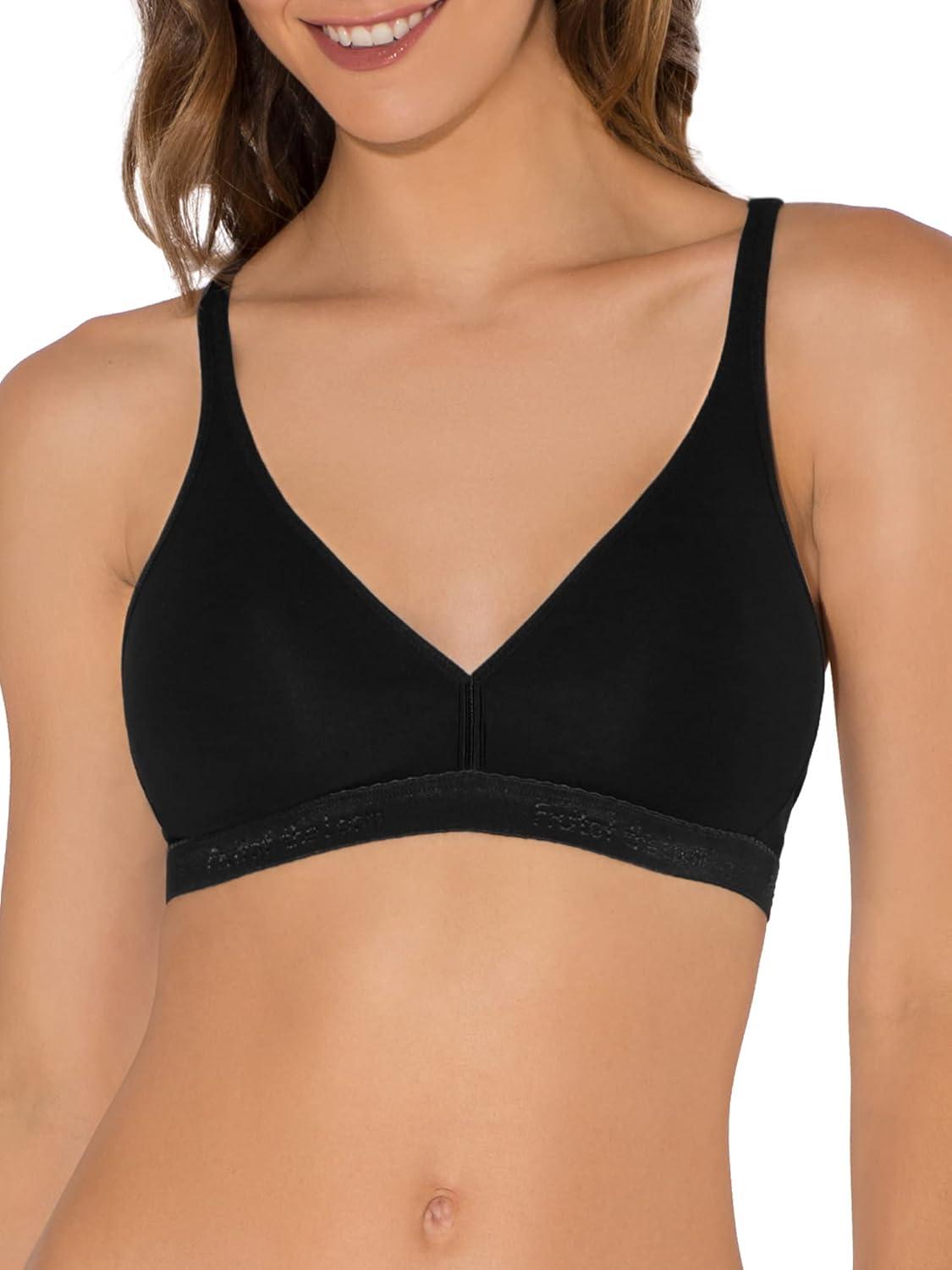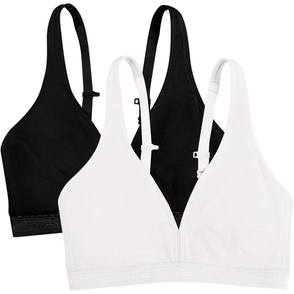 Fruit of the Loom womens Wirefree Cotton Bralette(Black/White)